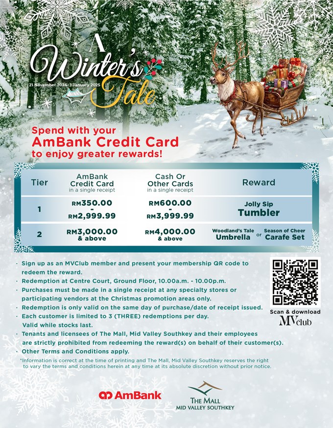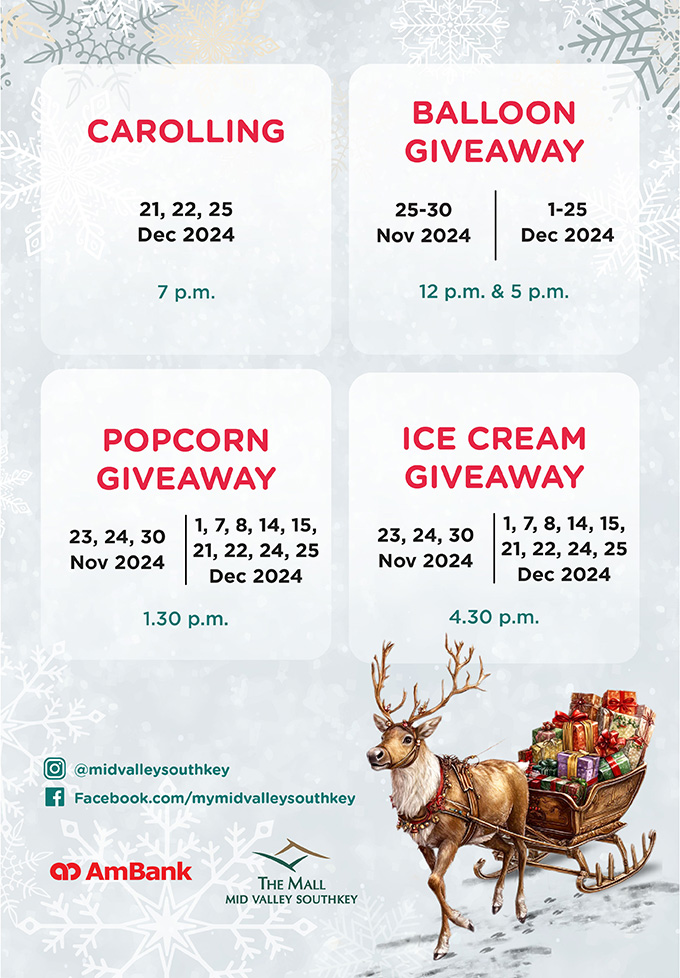 Find all you want for Christmas at The Mall, Mid Valley Southkey from 21 November 2024 to 1 January 2025, in a jolly collaboration with AmBank.