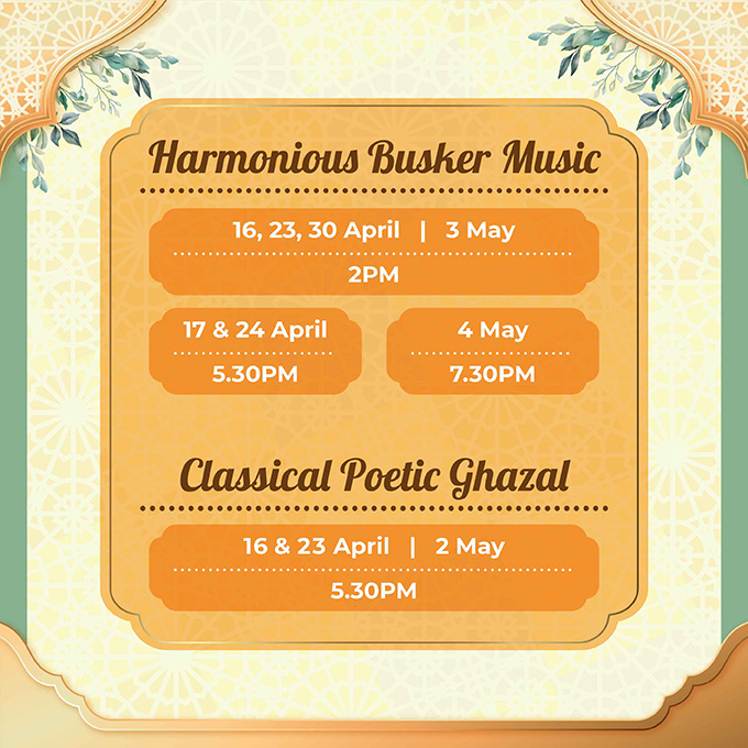 Treasure the season of blessed Hari Raya Aidilfitri with your loved ones. Take a time off to cherish your family bond together by curating your own greeting cards, master Ketupat weaving and learn a new recipe to try at home, while you have a ball with a handful of harmonious musical performances.