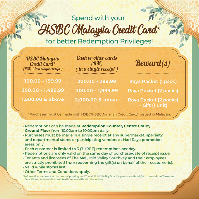 The delightful celebration of Hari Raya Aidilfitri is at The Mall, Mid Valley Southkey from 8 April - 8 May 2022, in partnership with HSBC.