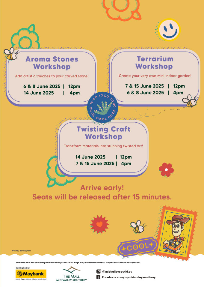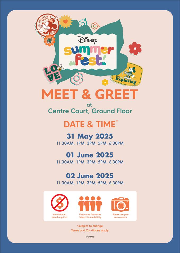 Get ready for a fantastical time at the Disney Pixar Summer Fest! Watch out for flower balloon giveaways and collect a special Disney-themed postcard that you can take around stamping stations to complete the stamp layering design. Take a break at the Colouring Corner, where you’ll find colouring pages of well-loved Disney characters for kids and adults to relax and have fun with!