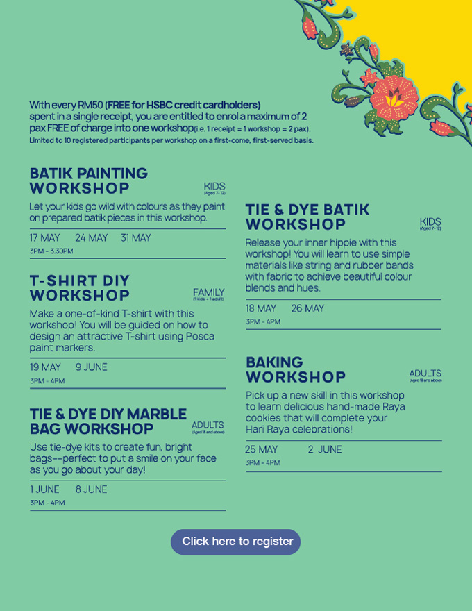 Come explore a Malaysian heritage this Hari Raya at The Mall, Mid Valley Southkey! The celebration welcomes colourful batik-inspired kampung houses and a multitude of local prints and patterns. As delightful music plays, weave through the shops to find seasonal treats and festive promotions all season long. Be sure to catch live performances and exclusive workshops guaranteed to put you into the right homecoming mood. There is no better time like now to gather as a family and celebrate this cherished moment. The Hari Raya campaign is from 10 May to 16 June 2019 at The Mall, Mid Valley Southkey in partnership with HSBC.