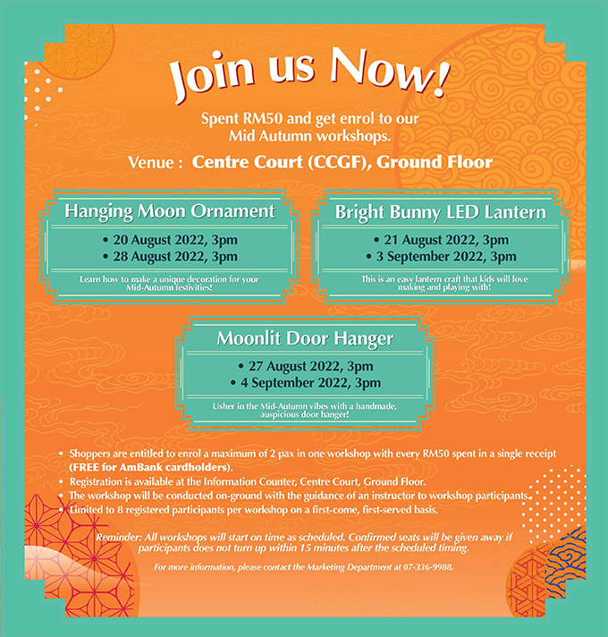 Colourful lanterns with warm autumn hues around, the celebration of Mid-Autumn Festival is here at The Mall, Mid Valley Southkey from 18 August to 10 September 2022!